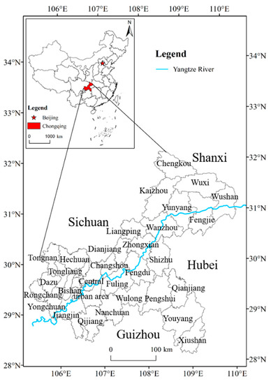 Chongqing is located in the southwest of inland China. Chongqing is a provincial administrative region (Figure 1), a municipality directly under the central government and megacity in China. It is one of the important central cities in China, the economic center of the upper reaches of the Yangtze River, an important national advanced manufacturing center, western financial center, western international comprehensive transportation hub and international gateway hub [33]. By the end of 2021, it had jurisdiction over 26 districts, 8 counties and 4 autonomous counties, with a total area of 82,400 square kilometers and a permanent resident population of 32.12443 million. Chongqing has complete educational and cultural facilities, including 111 museums, 41 cultural centers, 43 public libraries and 20 public art-performance groups. The comprehensive population coverage rate of radio is 99.49 percent, and that of television is 99.56 percent. There are 69 general schools of higher education, 3 adult colleges and universities, 129 secondary vocational schools (excluding technical schools), 2717 regular primary schools, 5684 kindergartens and 39 special education schools. The gross enrollment rate of higher education is 58.03 percent, the enrollment rate of primary school is 99.93 percent, the gross enrollment rate of preschool in three years is 91.01 percent, and the consideration rate of nine-year compulsory education is 95.67 percent. However, Chongqing’s urban and rural dual economic and social structure has obvious characteristics, and large urban and rural differences and regional differences have been formed in the process of education development.
