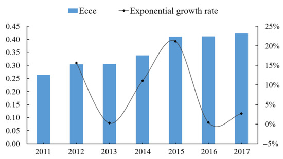 Trend of ecological carrying capacity of county education in 2011–2017.