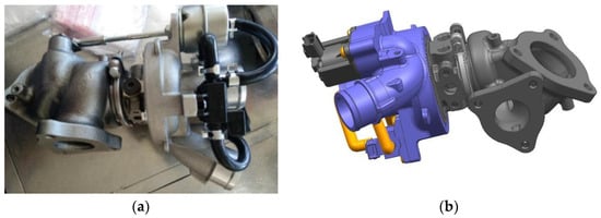 A 4-cylinder automotive engine turbocharger was used as the research object. Figure 2 shows the three-dimensional (3D) structure of the physical prototype of the turbocharger. Table 1 lists the parameters of turbocharger.