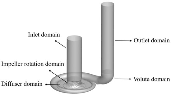 In the compressor numerical model, the impeller of the compressor was the equal-length blade and the impeller outlet with angle bending. The diffuser adopted a bladeless diffuser. The principle geometric structure and original turbocharger compressor fluid domain model are shown in Figure 3 and Figure 4.