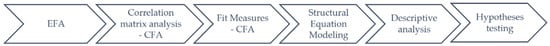 To validate the scale, Exploratory Factor Analysis (EFA) and Confirmatory Factor Analysis (CFA) have been implemented as methodological processes (See Figure 1). Measurement theory can then be combined with structural theory to fully specify an SEM model [,]. The fittest and most effective model is possible with the fit measures, reliability, and convergent validity results [,].