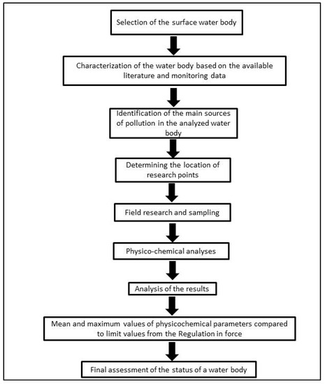 All Member States of the European Union (EU) are obligated to protect inland surface waters, transitional waters, coastal waters and groundwater according to the common framework established by Water Framework Directive 2000/60/EC (WFD) [1]. In accordance with WFD [1], the basic environmental goal for all surface waters is to achieve, at minimum, a good water status for natural surface water bodies or good ecological potential and good chemical status for artificial and heavily modified water bodies. This goal should have been achieved by 2015 and, in justified cases, by 2021 or 2027 or as soon as natural conditions permit after 2027 (Guidance Document, 2003) [2]. Europe’s water is under pressure due to increasing economic activities, growing population and urbanization process. There is a high probability that the objective of good status for all EU waters by 2027 is far from reach [3,4].