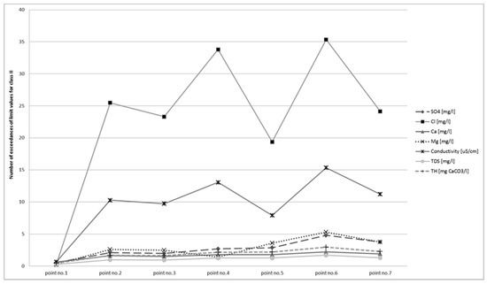 Number of exceeding the limit values for salinity indicators for class II from Journal of Laws 2021, item 1475 [5].