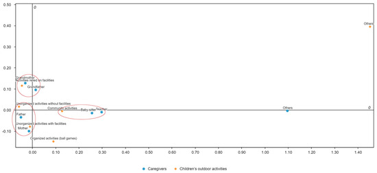 Correspondence analysis of relations between caregivers and children’s activities.