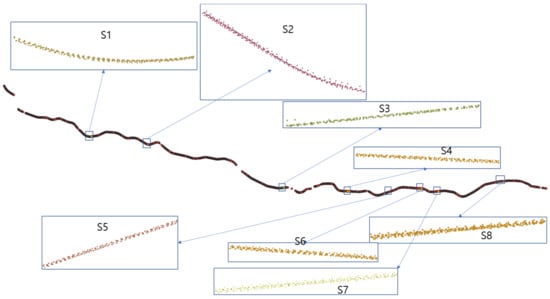 Figure 8 delineates the resultant 12-step grid division for the eastbound Expressway no. 50 in Figure 8a, road line configurations and overlapping segmentation in Figure 8b, and the extraction of the unstable traffic component within the final 12 segments in Figure 8c. A parallel analysis conducted on Interstate 50’s westbound trajectory is showcased in Figure 9. Table 5 comprehensively encapsulates the statistics derived from this analysis. Here, the part where the matched road alignment was cut off was excluded due to insufficient data for analysis.