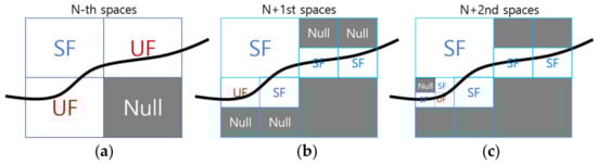 Space segmentation according to the determination of UF. (a) N-th (b) N+1st (c) N+2nd spaces.