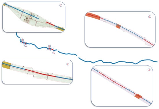 With UF segments thus identified, the intricate road network map was subsequently scrutinized to pinpoint influential variables. Figure 10 elucidates the outcomes of this analytical endeavor; the red line in the picture is the UF segments analysis result. This line matches the center line of the road, and the shape of the road matches the background of the map, highlighting distinct scenarios:
