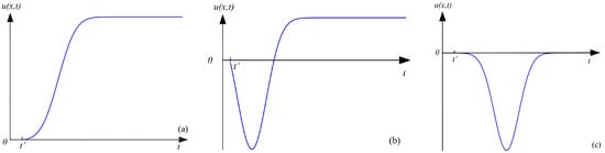 Upon analysis, it becomes apparent that is the non-fully mined area and that the subsidence curve w(x) belongs to the limited mining situation. Since the construction of this time function is based on the semi-infinite mining situation, when the influence function of the subsidence time function is similar to that of x = r. Consequently, depending on the position of x, the dynamic subsidence time function for point x on the strike main section can be articulated as follows [13,36]: