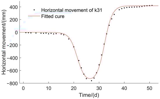 Fitted curve and dynamic horizontal displacement of point K31.
