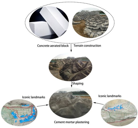Physical model building involves stacking concrete aerated blocks along the terrain contour line to create a terrain skeleton and then using concrete pavement to shape mountains and channels. The specific approach is as follows: