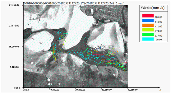 Vector diagram of surface velocity from the dam foot to Shangdi Village.