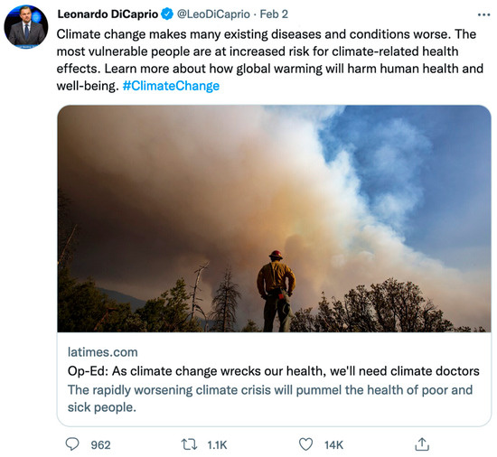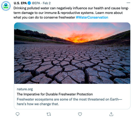 All in all, an entertaining or likable source of information, such as a celebrity, may not be more effective in helping a social media message induce a favorable reaction from audiences in the context of environmental communication. In contrast, a seemingly mundane but professional source, such as the U.S. EPA, may be more effective in achieving the goal of the campaign (e.g., higher article click-through rate, more shares or retweets, improvement in perception of message credibility). Hence, the most important implication offered by this study is that the practice of using celebrities as environmental campaign spokespersons on social media is questionable. Though celebrities have already been involved in many environmental protection campaigns either voluntarily or hired [9], the findings of this research study suggest that their involvement does not significantly improve the effectiveness of message delivery. Government agencies, environmental organizations, and activists across the world need to be cognizant when weighing the decision to involve a celebrity in their social media environmental campaigns. The findings of the study also illustrate the importance of making evidence-based, data-driven decisions in the implementation of environmental communication campaigns.