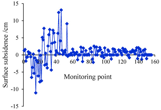 Subsidence values of surface monitoring points in the mining area.