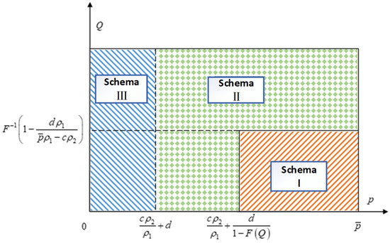 If , use to show up. When satisfying scheme 2 in Table 1, Q satisfies , compared with and 0. When ) and , mining enterprises would like to fill the mined-out areas.