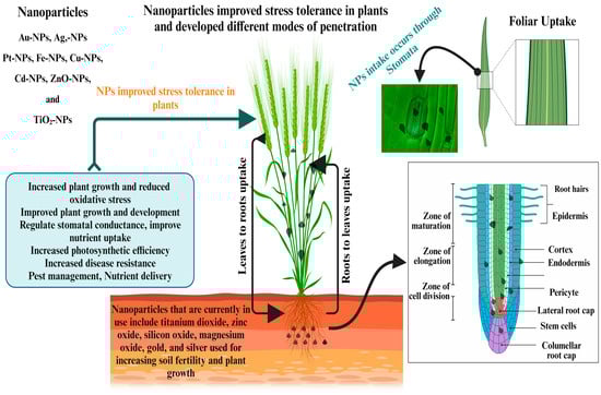 Nanoparticles improved stress tolerance in plants and developed different modes of penetration.