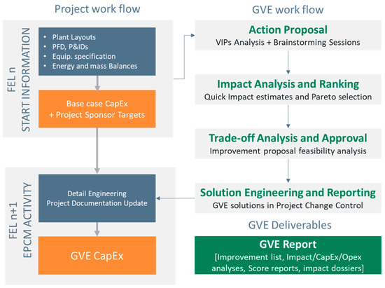Simplified project workflow applicable to FEL 1/FEL 2 and Green Value Engineering (GVE) workflow.