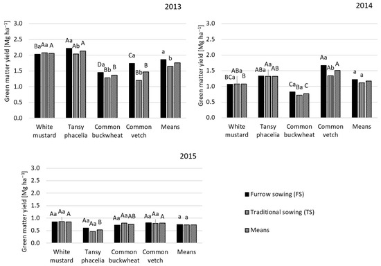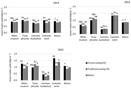 Effect of Sowing Method on Yield of Different Plants Grown as a Catch Crop