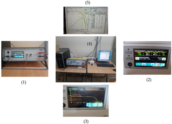 The instrument used is of type PVPM, which allows the measurement of the I-V characteristic and power curves of photovoltaic (PV) modules. The PVPM 2540C device can directly measure and calculate parameters such as peak power (Pmax), series resistance (Rs) and shunt resistance (Rsh) at the installation site of the PV system. The calculation results and diagram can be displayed on the internal LCD display and can be transferred directly to the computer, as shown in Figure 2.