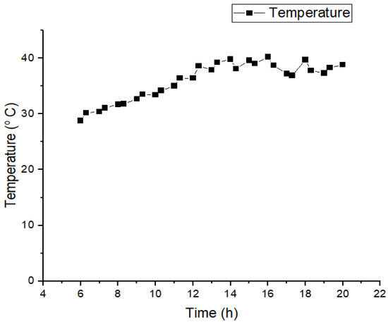 Daily solar irradiation (HG) and ambient temperature (T) were measured during the period of the experiment. Figure 3 and Figure 4 illustrate the evolution of the global daily solar irradiation and ambient temperature collected on 24 March 2023 in the Madinah site.