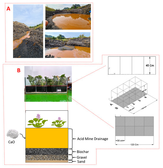 AMD from abandoned coal mining area (A) and artificial CW design (B).