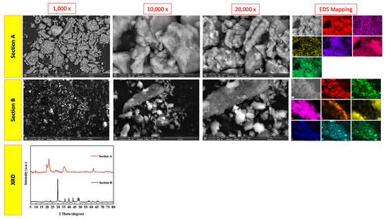 Characterization of CW Materials, EDS Mapping, and XRD Analysis.
