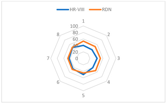 Comparative thrivability appraisal considering overall sustainability principles’ scores of HR-VIII and RDN.