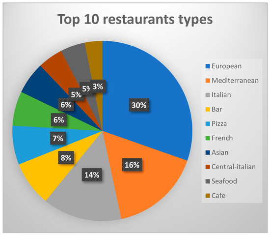 Top 10 restaurant types by percentage of total (authors’ own calculation).