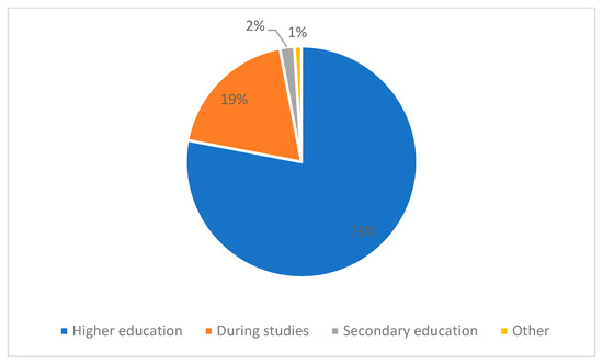 Even the very definition of sustainability is difficult to understand, not only for students but also for teachers themselves, because, as they themselves recognize, the subject of education for sustainable development is very complex. Among teachers, the term “sustainability” is best known by those involved in nature education. Of the students surveyed, 29% had never heard of education for sustainable development and only 10% were very familiar with the term. The level of familiarity with the term education for sustainable development is even lower among students in primary, middle and high schools. On the other hand, experts’ opinions on the introduction of education for sustainable development in higher education institutions are very general and apply only to certain fields of study (for more on this topic, see: https://www.gov.pl/web/srodowisko/badania-dotyczace-edukacji-dla-zrownowazonego-rozwoju (accessed on 16 August 2023)).