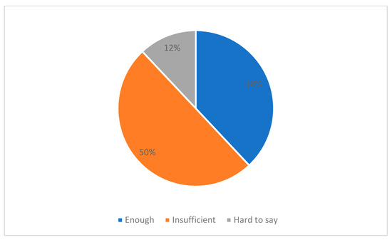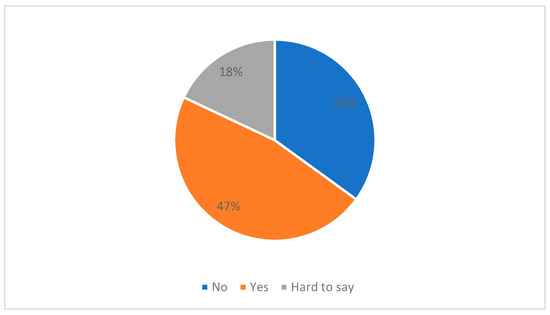 In addition, the respondents most often point to general school subjects and college classes, among which the following appear: economics, mathematics, psychology, social studies, finance, management, professional ethics, computer science, communication, negotiation, basics of entrepreneurship. In addition to these, the competencies of the future that the respondents were asked about are defined as specific skills that enable them to make decisions and perform tasks in the current work environment, and their development is essential for working in the MBS sector. The survey outlined the following competencies: team management, negotiation, communication, conflict resolution, managing one’s own time, creativity, motivating oneself to work, striving for development and working under time pressure. Respondents most often answered that these competencies were sufficient to meet employers’ expectations (47%), the second most frequently chosen answer was the opposite (35%), while the fewest respondents found it difficult to take a specific position on this topic (18%) (see Figure 4).