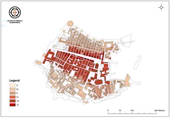 Consequently, the earthquake-related risk to the whole built heritage of Dubrovnik’s Old City is relatively high, as evident from seismic microzoning earthquake intensity ma (in compliance with the Mercalli–Cancani–Sieberg (MCS) scale) shown in Figure 20 and damage map in Figure 2.