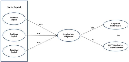 The MICE (meetings, incentives, conferences, and exhibitions) industry consists of various stakeholders and their collaboration is essential in achieving the success of the entities involved. Yet, limited attention has been paid in the literature to examining cooperation among them. Thus, this research intends to understand the impact of social capital on supply chain integration in the MICE industry and the influence of supply chain integration on corporate performance and MICE destination competitiveness. Based on purposive sampling to recruit respondents working in the MICE industry in Busan, Korea, surveys were distributed online and offline. A total of 158 valid samples were utilized for data analysis, in which partial least squares (PLS)-SEM was conducted. According to the results of this study, relational and cognitive social capital affects supply chain integration and enhanced supply chain integration leads to higher corporate performance and destination competitiveness. The findings unearth novel understanding regarding the importance and function of collaboration among stakeholders in the MICE industry, from the perspective of social capital and supply chain integration, that offers valuable theoretical and practical implications.