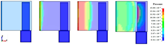 To predict the dynamic responses of the columns to blast loads, the coupling method mentioned in Section 2.1 was applied for blast load modeling [10]. Figure 6 shows the process in which the air reaches the target structure through the air mesh and ambient layer. It can be observed that the interaction between the air and target structure (i.e., the action of reflected and shock waves among the ground, structure, and air) was performed as the FSI algorithm was reflected through modeling that used the coupling method.