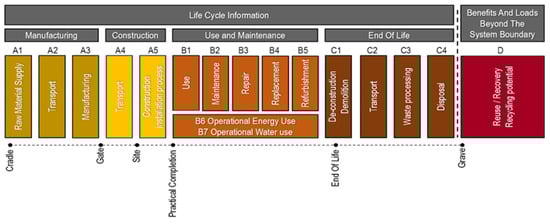 Life-cycle assessment framework, reproduced from reference BS EN 15978:2011 [36].