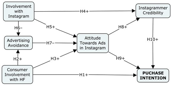 Among the most acknowledged consequences of consumer involvement with a product is increased purchase intention [,,]. In the influencer marketing realm, Cabeza-Ramirez et al. [] hypothesized that product involvement positively affects consumers’ intentions to purchase the products recommended by digital influencers. Therefore, it is expected that: