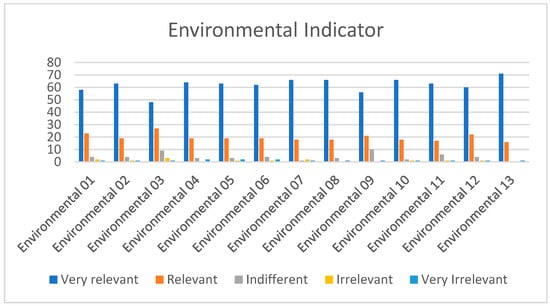The Environmental indicator was also verified among the population (sample) of Florianópolis in order to verify which sub-indicators were considered relevant. Figure 4 presents the results of the classification carried out by the sample of the population of Florianópolis regarding the relevance of the environmental indicator.