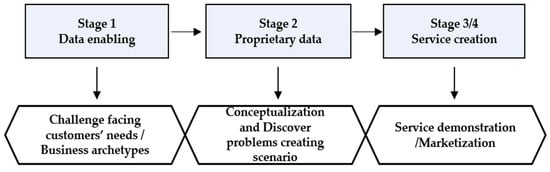 Stage 1 is the first phase of data enabling. It involves gathering relevant data regarding customers’ requirements and business archetypes. This phase is a design research step intended to find the problem setting that meets the current customer’s needs. In this stage, the research team should derive the service concept.