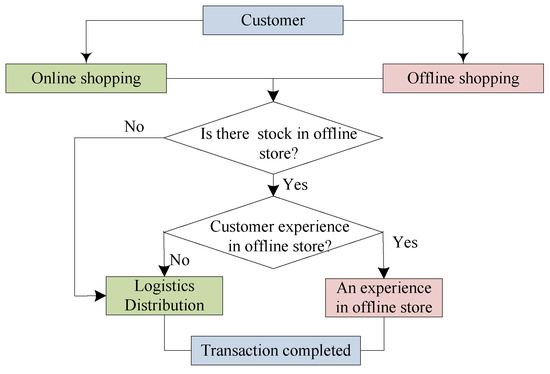 As an emerging business model, new retailing can be regarded as the integration of online/offline and logistics, promoting precise service for customers. The new retailing business model involves interaction among offline users, suppliers, and consumers on each side of the e-commerce platform. In this way, many enterprises have built warehouses in different cities, and local delivery service exceeds remote delivery in this model [25]. Using big data, new logistics can accurately predict the sales volume and arrange distribution. With the background of the application of e-commerce, the new retailing model is described in Figure 1.
