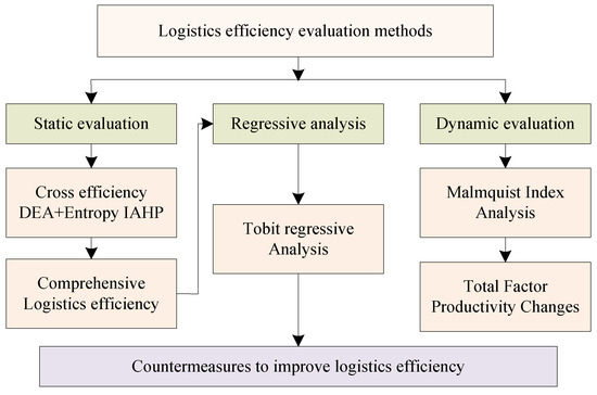 In this section, we will present the methodologies for logistics efficiency evaluation with the new retailing background under sustainable development, including the static evaluation method, dynamic evaluation method, and regressive analysis, as can be seen in Figure 2.