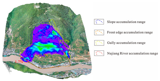 - Through the comparative tests of the designed indoor chute and numerical simulation chute, the accumulation height, accumulation range, and retention length of landslide accumulation under the two groups of tests were compared by the control variable method. The landslide parameters based on the Voellmy-fluid friction model were determined, where the friction coefficient is 0.33 and the turbulence coefficient is 150 m/s2. From the accumulation characteristics of the landslide, the topography significantly impacts the volume of the landslide entering the river. Most of the landslides are completely detained on the slope, and only a small part of the landslides flow into the Nu River, accounting for only 1.7% of the total volume of the landslide. From the numerical simulation results, the landslide entering the Nu River has not completely blocked the river. Thus, the Zhuangfang landslide cannot form a dam to block the river. However, because some landslides still enter the Nu River, the landslides will not completely block the river, causing river sand siltation and river diversion, leading to water pollution, fish reduction, vegetation destruction, and damage to the front disaster-bearing bodies, which is not conducive to the sustainable development of the ecological environment in the basin. It is recommended to carry out timely management of the landslide.