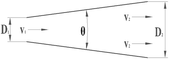 As shown in Figure 1, the upstream pipe diameter of the gradually expanding pipe is , with a velocity of