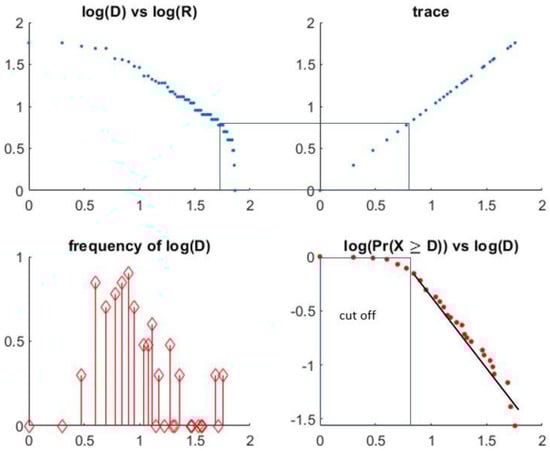 To fit an empirical function to data of this kind, we use the robust fitting techniques provided by Clauset et al. [37]. Their paper endogenously estimates the cut-off and power-law parameter according to a goodness-of-fit-based method. They describe the fitting procedure as follows: (1) for each possible choice of the cut-off, estimate the power-law parameter (slope) via the method of maximum likelihood, and (2) calculate the Kolmogorov–Smirnov goodness-of-fit statistic Z. The selected cut-off is the value that gives the minimum value of Z. In some cases, the power-law relationship fits only the upper portion of the data. This occurs when the distribution has a large number of nodes with fairly high degrees. This happens for point-to-point systems, so identifying the cut-off can help facilitate their detection.