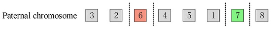 Step 4: The population is genetically manipulated, and the newly generated individuals are used in Equations (12) and (13) to calculate each clustering center, the degree of affiliation, and the individual fitness value of the evolved offspring is . If the condition of is satisfied, pre-evolutionary individuals are replaced by evolutionary offspring individuals. Otherwise, the evolved offspring is accepted with the , and pre-evolutionary individuals are discarded.