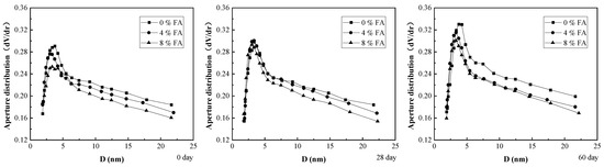 Pore size distribution of modified RC with different FA contents under the same permeation time.