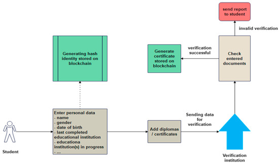 However, as the number of institutions that issue a diploma has grown, the possibility of fake diplomas has also increased. For example, in 2018, media [1] brought the public’s attention to the case in which two politicians from Spain forged master’s degrees. As a consequence, the institution suffered reputation damage, because it seemed that it helped the politicians in this process. Moreover, the problem of fake diplomas can increase the perception of young adults that the road to success does not need to be the one that requires work, because there is always the possibility of shortening the path and decreasing the effort. Hence, as will be seen below, a blockchain technology implementation would prevent the issuing of fake diplomas with a date in the past, i.e., it would be very difficult or nearly impossible to create counterfeit diplomas with backdated dates. Thus, a technical solution based on blockchain would become useful somewhere in the future [2,3] without having an immediate applicability, which can represent a limitation for those who want urgent solutions.