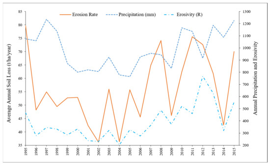Erosion rate and its relationship with precipitation and erosivity FY (1995–2015).
