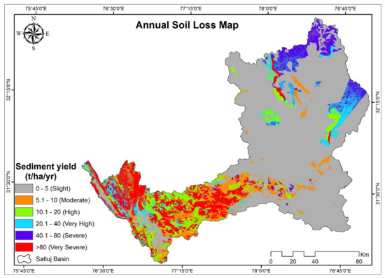 The aim of this analysis was to (1) assess the impact and spatial pattern of soil loss on a pixel-by-pixel basis for the Sutlej basin for 21 years using RUSLE; (2) validate the approach to sediment yield estimation using available observed data of sediment concentration at different locations over time; (3) examine the influence of land use/land cover variation on soil loss in the entire Sutlej catchment; and (4) prioritize sub-catchments on the basis of erosion rate.