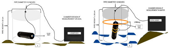 (a) Chamber design for flux measurements on the ground, (b) chamber design for flux measurements on water [12].