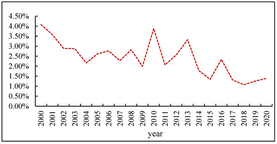 Proportion of direct economic losses as GDP caused by disasters. Source: China Statistical Yearbook (2001–2021).