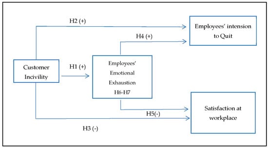 Emotional exhaustion mediates between customer incivility and employee’ satisfaction at work (Figure 1).