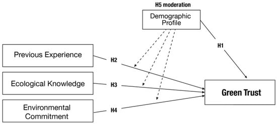 Demographic profiles moderate the effects of previous experience, ecological knowledge, and environmental commitment toward green trust.